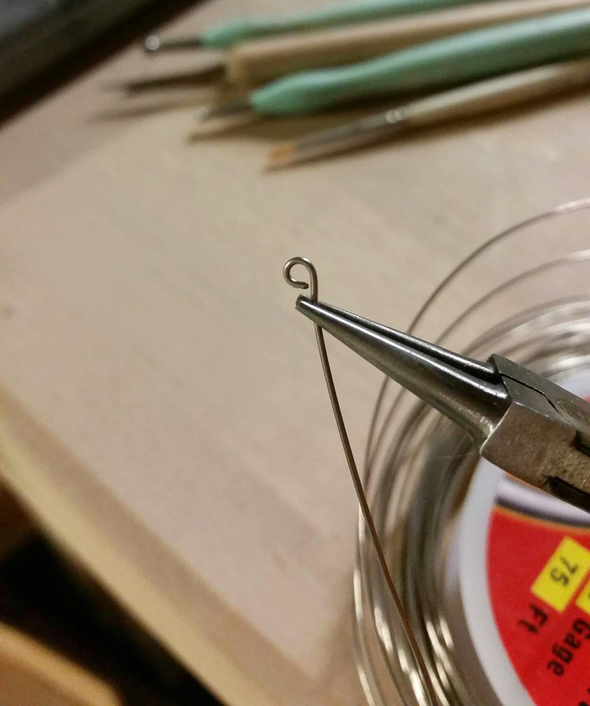 While the shell continues to dry, I cut and form some little antennae from high-fire wire.