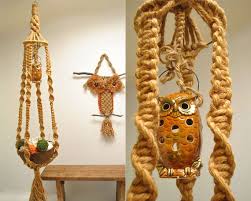 During the 1970's when other crafts such as quilting, stitchery and needlepoint found their revival so did macramé. This time around the fine silk threads of the Victorian Era were replaced with rope, twine and hemp. It was during this time period that I learned the mystical art of knot tying! I made plant hangers and more plant hangers followed by Santas with fuzzy beards to hang on your front door and three foot tall owls to hang over your fireplace. Crazy stuff! And BIG!