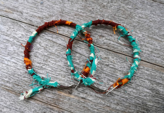 | Bangles wrapped with sari silk and embroidery yarn and sewing thread (oh, and wire!) |